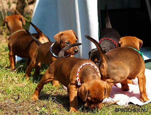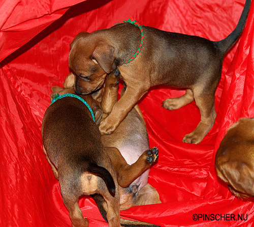 9 april - 36 dygn Utvecklingen går fort. Dagarna fylls med besök vilket är jättekul för Bizkit och bra för valparna. De kräver nya utmaningar och saker att undersöka för varje dag, vi får vara påhittiga. Namnen är klara och inskickade men inte slutgiltigt godkända av SKK än.
