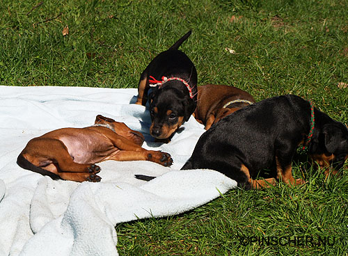 30-36 dygn gamla17 april - 30 dygn Valparna trivs bra i hallen och i huset. Bizkit diar inte dem så mycket längre och när hon väl gör det går det fort. De vuxna hundarna får klara sej med väldigt lite promenader pga tidsbrist, skönt att de fixar att ha passiva perioder!