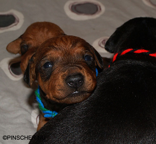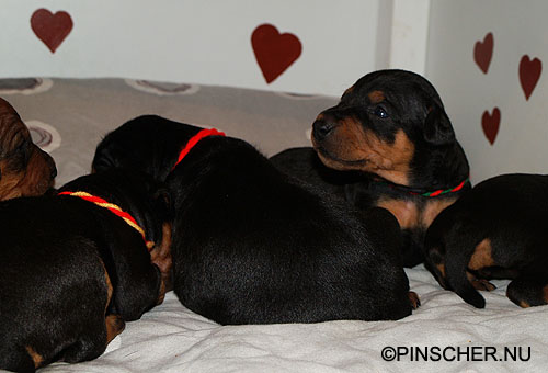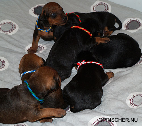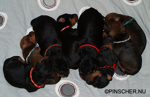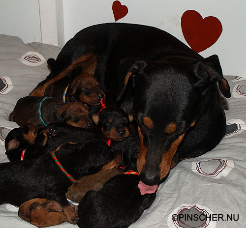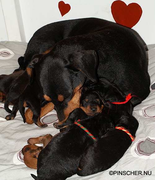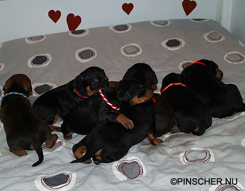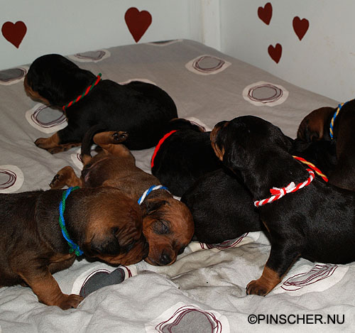 9-17 dygn gamla27 mars - 9 dygn gamla Bizkit tar hand om sina små väldigt bra. Hon äter som en häst, eller iaf som en grand danois ;-)