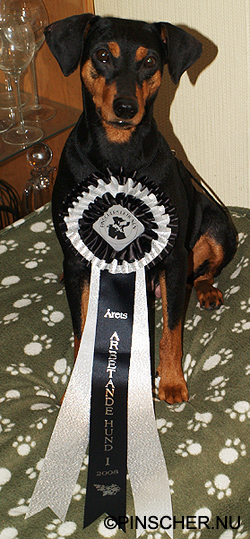 Bizkit har tydligen en till titel i Danmark som vi inte visste om, DKKV-07 dvs Dansk Rasvinnare 2007, en titel som har funnits sen 2002. Hon är den pinscher i Danmark som fick mest poäng under 2007, kul!